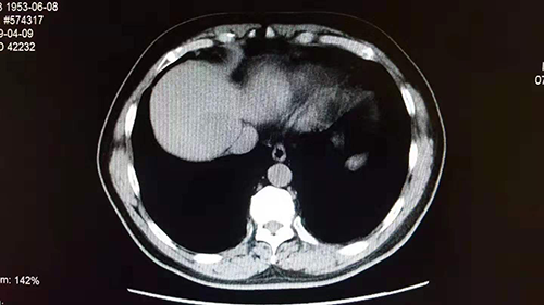 美超体检中心客户、男性、65岁,有“小三阳”多年。2019年5月体检,超声和CT影像学均显示肝血管瘤,并与去年比较结果相同,肿瘤指标甲胎蛋白检查显示阴性。超声与CT图像在比较分析时发现,超声与CT初步判读的肝血管瘤并不在肝脏的同一部位(同一病灶),经对病灶进行定点超声扫查,确认为肝实质性占位,随后在东方肝胆医院获得手术切除。